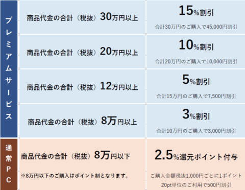 ※お買い上げ金額8万円以下までは通常のポイントカード対応となります。